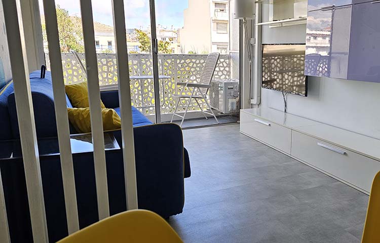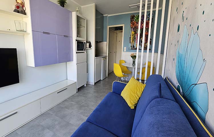 Appartamento bilocale in stile moderno Situato al 7° piano con terrazzo e parziale vista mare a 40 metri dal mare. 4 posti letto (letto matrimoniale e un divano letto).