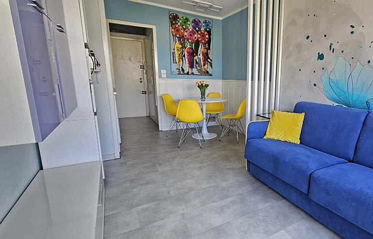 Appartamento in stile moderno situato al 5° piano con balcone e parziale vista mare a 40 metri dal mare.