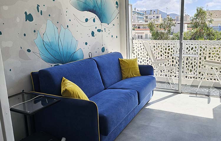 Il monolocale Zaffiro è completamente rinnovato e comprende un ingresso con armadio a muro, un bagno con doccia e lavatrice, un soggiorno con angolo cottura, un divano letto con materasso ad alta densità. Completa l'appartamento un balcone dove è possibile pranzare o gustare delle buone colazioni.